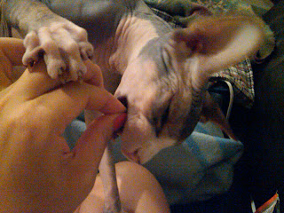 Monkey is trying to eat the snack I'm holding...in the meantime, please check out his paw!!!!